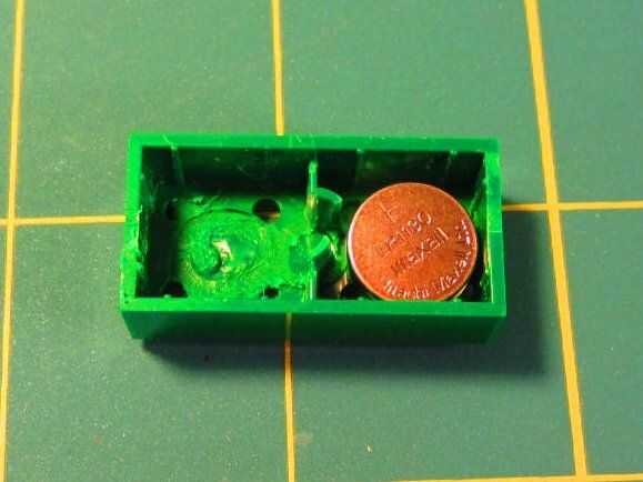 El LR1130 baterías son perfectas para esto porque su diámetro es tal que encajan casi perfectamente en una sección de 2 x 2 del bloque LEGO, y dos de ellos apilados juntos ajuste bien dentro de la altura de la cuadra.