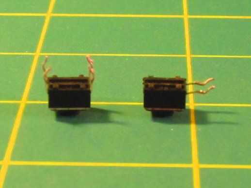 Los pulsadores que estoy usando aquí y todos los similares que he visto tienen cuatro pares de patas. dos de las patas están conectados internamente entre sí, y los otros dos también están conectados internamente entre sí. No hay suficiente espacio dentro del bloque de las cuatro patas, por lo que tendrás que eliminar las dos patas redundantes.