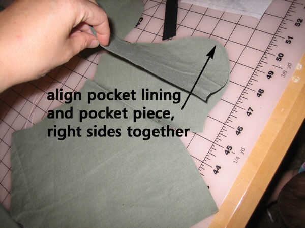 Paso 6: Alinee la pieza de bolsillo con forro de bolsillo