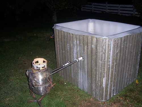 Nota: Puede mover la bañera a tiempo completo ubicación ahora antes de fijar el calentador. Es pesado así que un amigo. Realmente hice un remolque para mover por mi cuenta (tengo amigos pero estaban en el trabajo en el tiempo).