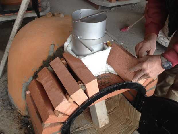 Básicamente, el arco es sólo una pila de ladrillos. Puedes construir en la planta - horizontalmente - y luego levantarla y cemento para el horno, esto es más fácil.