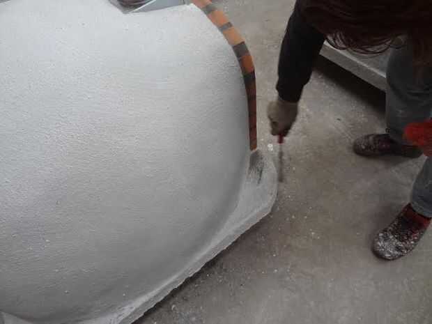 En primer lugar debe cubrir la cúpula con el alambre de pollo. Luego una capa de media pulgada de cemento refractario... Ahora la parte principal: aislamiento. El mejor que hay es mantas de fibra cerámica (Kaowool, Superwoold etc). Usted está usando uso una densidad de 6 a 8 libras. Usted necesitará una 3" capa alrededor de la cúpula. Esto generalmente significa capas de 3 x 1" como vienen normalmente en 1" de espesor.