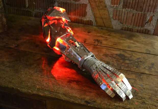 Con una visión clara de cómo podría parecer, pero no tuvo que buscar como, apenas empecé el proceso de construcción, con mi brazo derecho como un modelo. He utilizado otros patrones o no imprime azul, fue más un ensayo de un proceso de error, donde hice algunos pasos del edificio y decidió acabar con ellos, si el resultado fue bastante bueno, teniendo en cuenta la función y diseño. Si me wasn´t satisfechos con el resultado, me ponen a un lado y trató de algo diferente, a pesar de que significaba que había trabajado medio día en vano. Esto también significa que no tengo planos ni dimensiones exactas del brazo metálico, cada parte individual es simplemente adaptada a mis propias dimensiones del cuerpo, mientras que la externa para salir de una óptica agradable.