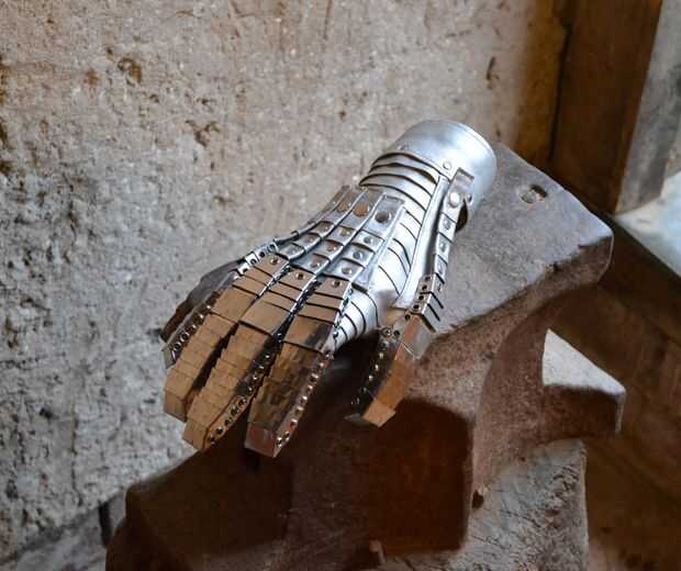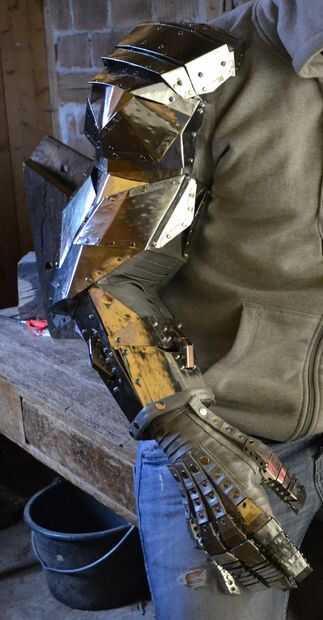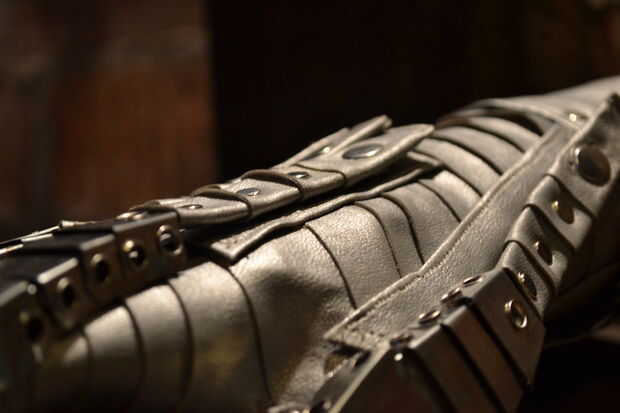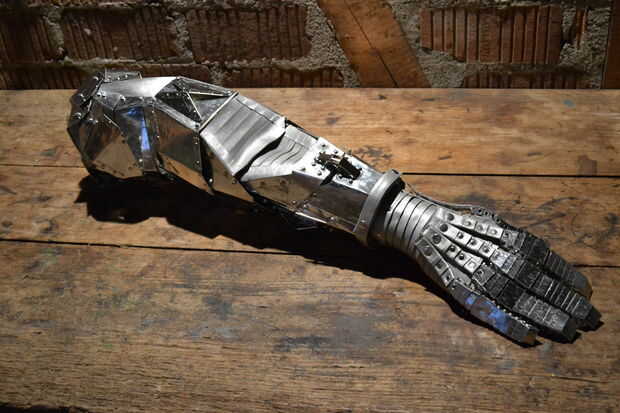 Mi intención general era construir un brazo de metal completo, manteniendo la movilidad de las articulaciones tanto como sea posible. Mantener la movilidad es el reto más grande, si se intenta reconstruir los miembros humanos de materiales rígidos como metal. Para trabajar alrededor de este problema y lograr un buen resultado, usé algunos cuero color plata para algunas partes críticas.