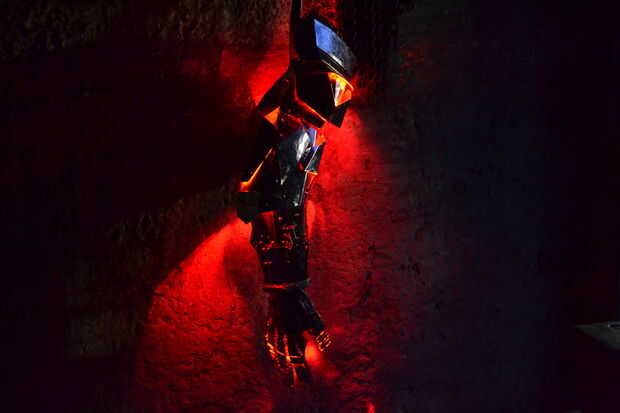 # Nota: Los efectos de la luz roja en algunas fotos se observan con led´s rojo, las células de la moneda e imanes que pueden fijarse fácilmente a casi todas las posiciones de este brazo del metal. Informatiion adicional sobre estos "throwies" se puede encontrar aquí: