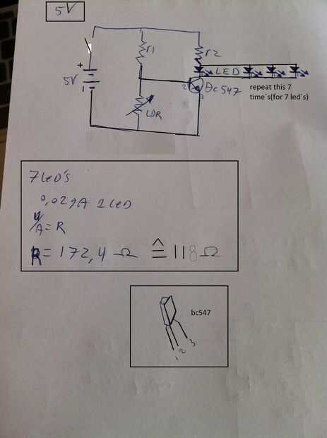 y para R2 una resistencia de ohm 118 lo que funciona bien utilizando wily 7 led de