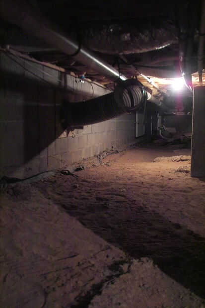 No deje ninguna ventilación hacia el exterior causa sobre todo de querer ser eficiente de la energía y no una fría habitación debajo de uno anterior que intentaba calor en invierno. Hablar con el inspector de edificio sobre este y lo convenció que pude poner un ventilador de dos aguas en un temporizador en cada extremo una insuflación y la otra soplar hacia fuera para asegurar un buen cambio de aire por lo que nunca mohos. Intencionalmente dejé empujar aire en mi taller y reemplazar el aire debajo de la casa en el otro extremo del garaje. Esta manera en invierno cuando estoy usando la estufa de leña si estoy trabajando en algo puedo abrir el conducto para el taller y cerrar el amortiguador y el calor viaja en un círculo grande en el garaje en el crawlspace y luego en el taller para hacer circular el calor así que puedo trabajar en algo pleno invierno si es 40 hacia fuera con una camiseta.