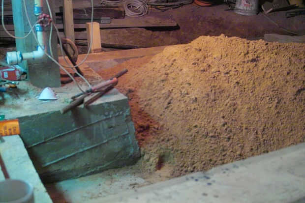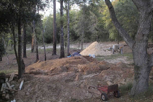 Con las formas y 6 yardas de concreto con seguridad ocultos y cubiertos con una lona para estar seguro que empecé a cavar al lado del puerto de acceso así que podría conseguir una habitación permanente. Los primeros cinco pies del suelo es arena que creo denominado Ruffie naranja pero necesito verificar que mi estudio de suelos del Condado de Walton.