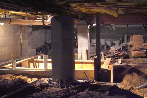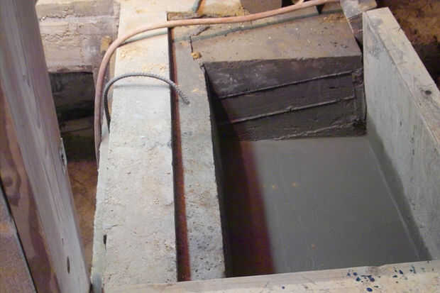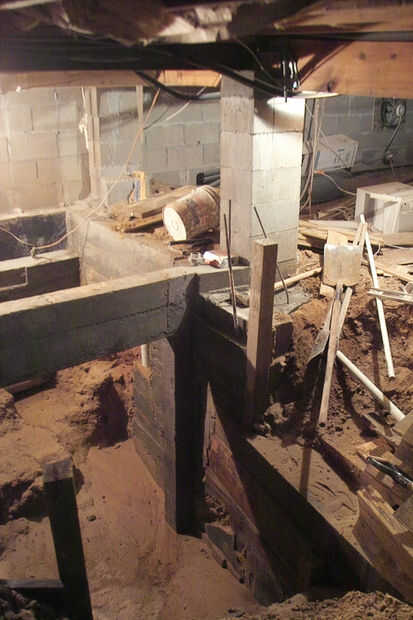 Hice esto aproximadamente 7 por 7 desde cuando fui profundamente conseguiría más estrecho y estaba cerca de 18 pulgadas entre dos columnas que sostienen las vigas así que esto era un buen lugar para probar. El primero vierta 2 pies también vertido y forman un haz de luz entre las columnas con un montón de pesados del hierro de ángulo cortado para caber firmemente entre las columnas.