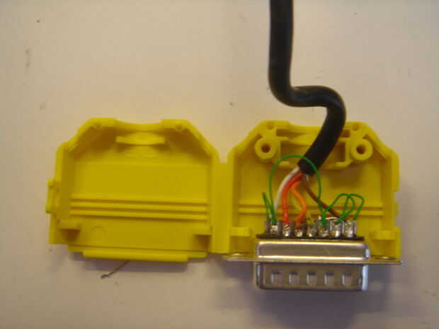 La parte más importante del montaje de la campana es de entender y usar el 'pull-stop'. Cada campana debe tener un método de aferrarse al cable. No quiere usar esto para sostener los alambres individuales porque no tienen mucha tensión sin posiblemente se sacó. La parada de tirar de la campana se hace para agarrar el cable real donde es más fuerte, con todos los cables juntos y cubiertos en el fuerte aislamiento. En el caso de cualquier fuerza de tracción sobre el cable, la fuerza se transfiere a la campana y el conector DB-15, en lugar de los puntos de soldadura débil conexión del cable al enchufe.