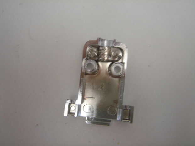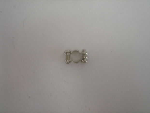 Topes de extracción más utilice dos tornillos pequeños y dos pequeñas piezas de metal. Los pernos se utilizan para apretar las abrazaderas de metal alrededor del cable. Una vez las abrazaderas en forma segura, se colocan en una zona de la campana que les impide moverse. Este método parece ser el más común, y así tengo foto de ellos a continuación.
