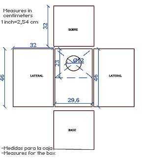 Ésta es las piezas de la caja y las mediciones: (ver archivo PDF)