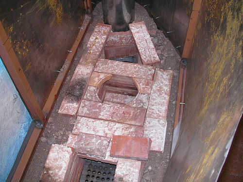 Esta siguiente parte, que básicamente consiste en apilables ladrillos, tiene dos funciones principales. Lo primero es crear un camino para el humo, que viajará a lo largo de la cámara de combustión, y hasta en el elevador, abajo otra vez hasta el codo de tubería de estufa usted acaba de poner en y a través del tubo de la estufa de la chimenea o salida. El segundo propósito de los ladrillos es retener la arena.