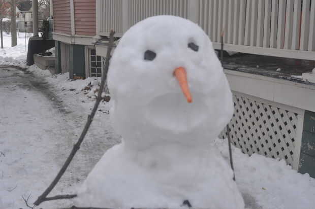 Como los brazos, las bocas también son importantes a la broma. Para hacer la boca, yo les llevó hacia fuera con un lanzador de bola de nieve. Para el decapetated muñeco de nieve, encontré un palo que fue un medio círculo y utilizó para el entrecejo.