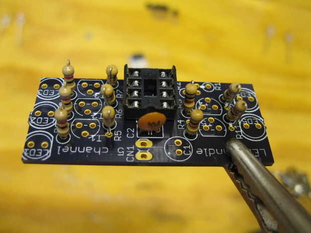 A continuación instale resistencias límite actuales de 5 LED en lugares R8, R9, R10, R11, R12 como se muestra.