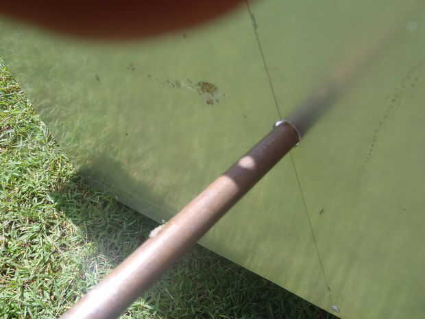 Utilizar la madera para levantar un extremo hasta que el círculo de luz cae sobre ambos lados de la tubería.