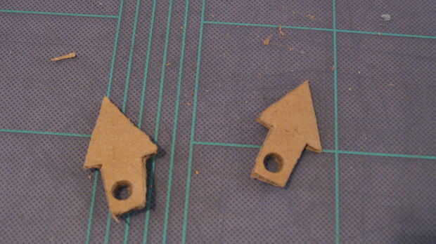3) elegir qué forma quieres para tu indicador. Esto es lo que usted da vuelta a desbloquear la cerradura, así que asegúrese de que puede manejar el abuso. La flecha que elegí no estaba fuerte alrededor del agujero del eje, por lo que no funcionó bien.