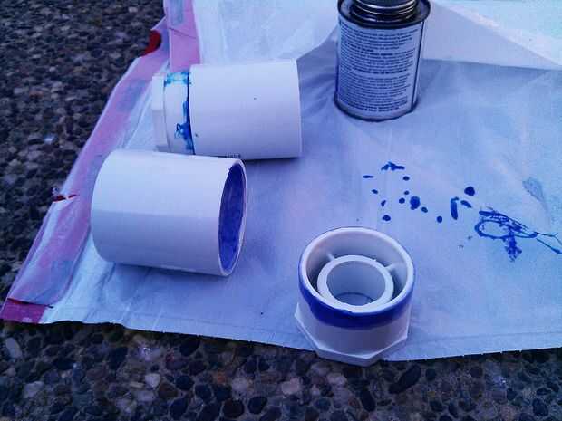 Prime la parte exterior de la 2 "x 1" del buje y el interior de 2" de acoplamiento. Después de que se seque, añadir cemento a donde sólo cebada y conectar los dos. Repetir este proceso para el otro buje, y 2" de acoplamiento.