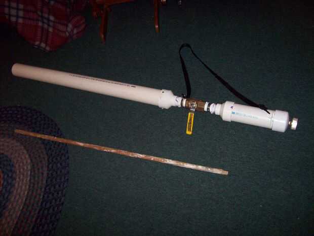 Desenrosque la tapa apagado o su válvula de neumático válvula de Schroeder (usted debe tener uno incluido con la válvula, si no debe sentir vergüenza de ti mismo porque la suciedad se en ella y obstruirlo) y luego use el mandril correcto para presionar a la presión del compartimiento a una presión que está bien debajo de la especificada psi presión nominal de la tubería. Creo que el tubo que he usado era máximo 260 psi, y lo tomé hasta de 90 psi (parcialmente porque yo no pude conseguir más debido a una fuga de aire). Una vez alcanzada la presión deseada, apuntar el cañón y abrir rápidamente la válvula de bola.