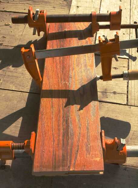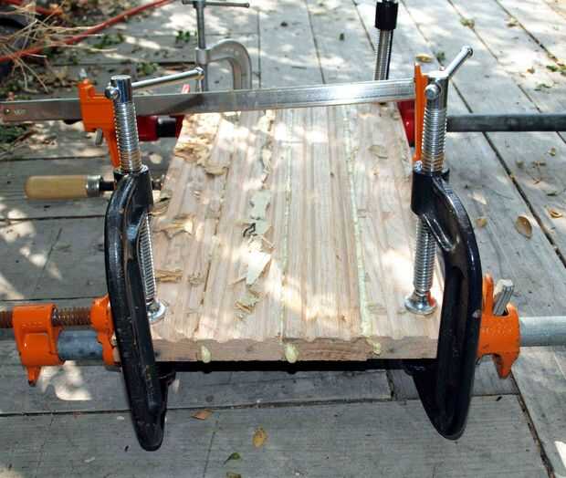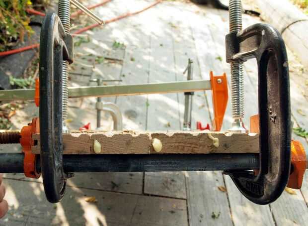 Si se utiliza una abrazadera de tubo, como en la foto, usted puede sujetar la madera al tubo para mantenerlo recto y plano. Suponiendo que el tubo no quede doblado.