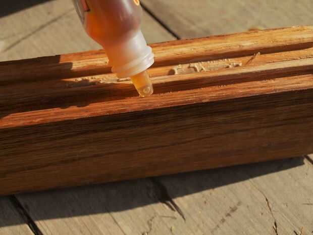 Sólo sigue las instrucciones simples y mojar la madera primero. Poner en una cantidad moderada de pegamento Alinee y fije la madera. Tienes un poco de tiempo antes de que el pegamento comienza a hacer espuma así que no te preocupes si le toma varios intentos para que las pinzas bien. El pegamento de la espuma de la Unión y llenar todos los vacíos.