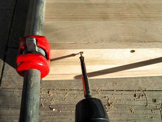 Poner las abrazaderas en los extremos y luego perfore los agujeros piloto en el centro. Esta manera que no sujete el centro pero algo dejaron los tornillos dibujar juntos.