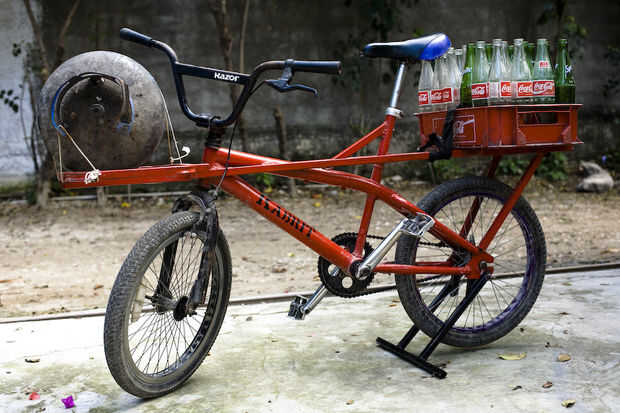 DiseñoMe cansé de caerse al subir mi vieja bici completamente cargada con carga. Busqué uno que tenía todo lo que necesitaba, como desmontar fácil, completo MTB engranajes (para subir colinas con carga) y una parrilla delantera que no afectaría a la