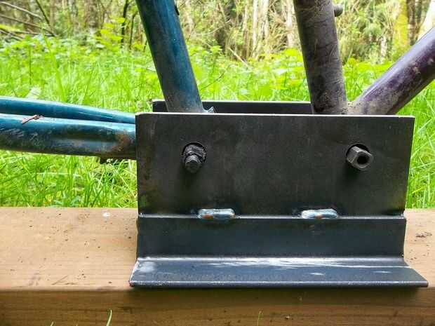 Para la segunda moto que usando un accesorio para los soportes inferiores que ayudarán a mantener las dos mitades del marco de la recta, cuando se sujetan juntas para la soldadura de tachuela.