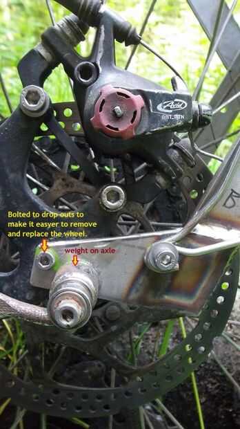 Abandonos de freno de disco trasero pueden soldar en después de que haya terminado. Luego construir una parrilla trasera derecha en marco, asegurándose de que se libere el freno de disco.