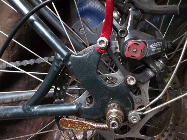Nota cómo la defensa holding se doblaran en el freno de disco.