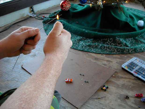 Calentar el extremo del alambre y empujar en las ruedas y recorte el exceso de cable.