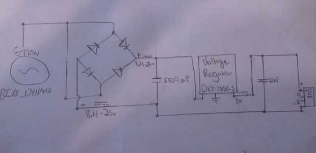 La primera cosa que usted necesita comprender es que una dinamo de bicicleta generará energía de CA (corriente alterna). No podemos utilizar directamente este poder carga/energía nuestro equipo USB porque equipo digital casi siempre utiliza alimentación de CC (corriente continua). De hecho, para cualquier puerto USB son estándar especificaciones que deben cumplirse para que sea un puerto USB. Corriente de 5 voltios es la corriente USB estándar; sin embargo, la corriente suministrada por el puerto puede variar dependiendo del dispositivo conectado a él.