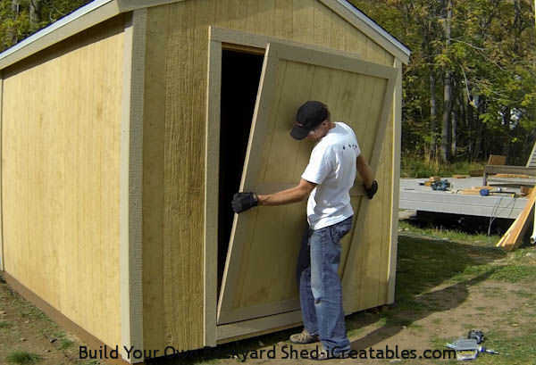 Haz clic en el enlace de videos, fotos e instrucciones paso a paso sobre cómo construir una puerta del galpón: http://www.icreatables.com/sheds/how-to-build-shed/how-to-build-a-shed.html