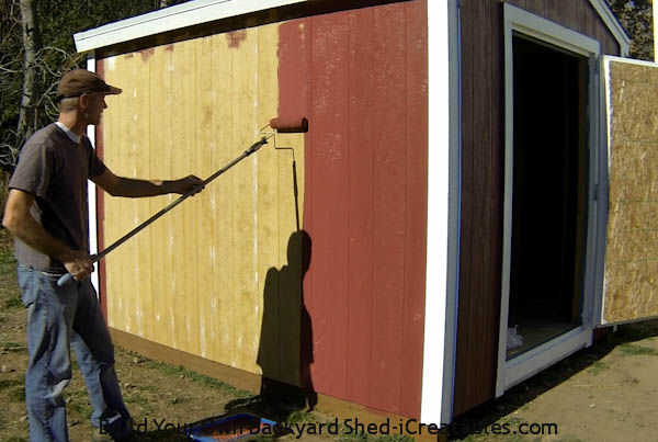Haz clic en el enlace de videos, fotos e instrucciones paso a paso sobre cómo pintar una vertiente: http://www.icreatables.com/sheds/how-to-build-shed/shed-build-paint.html