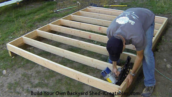 Haga clic aquí para obtener instrucciones sobre cómo construir un cobertizo piso: http://www.icreatables.com/sheds/how-to-build-shed/shed-build-floor.html