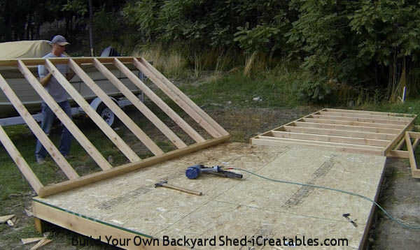 Clic en el enlace de un video, fotos y las instrucciones sobre cómo construir las paredes del galpón: http://www.icreatables.com/sheds/how-to-build-shed/shed-build-walls.html