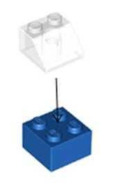 Este paso dará nuestro coche un ángulo frontal combinando las dos piezas claro angulares con los ladrillos de 2 x 2 azul y instalarlos en la parte delantera de la base. En primer lugar, tienes que conectar a una de las piezas claras inclinadas sobre uno de los ladrillos de 2 x 2 como se muestra. Usted desea repetir el paso precisamente por el otro ladrillo 2 x 2 azul y claro pedazo en ángulo.