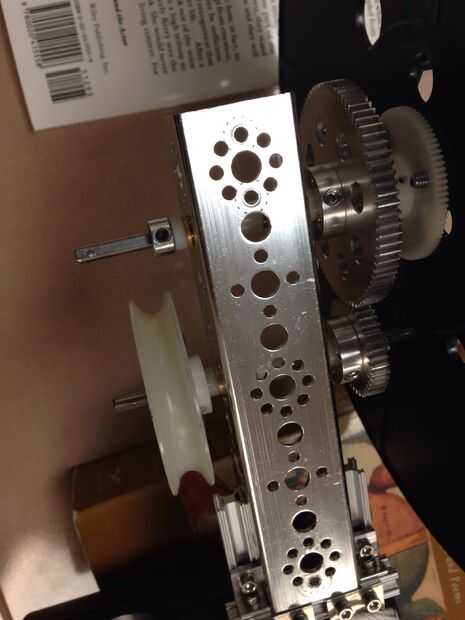 Nido: Tome un pedazo de 160mm de canal C Tetrix y su volante y engranajes así como sus ejes y móntelas a Tetrix C-Channel en la ración de engranaje que usted desee.