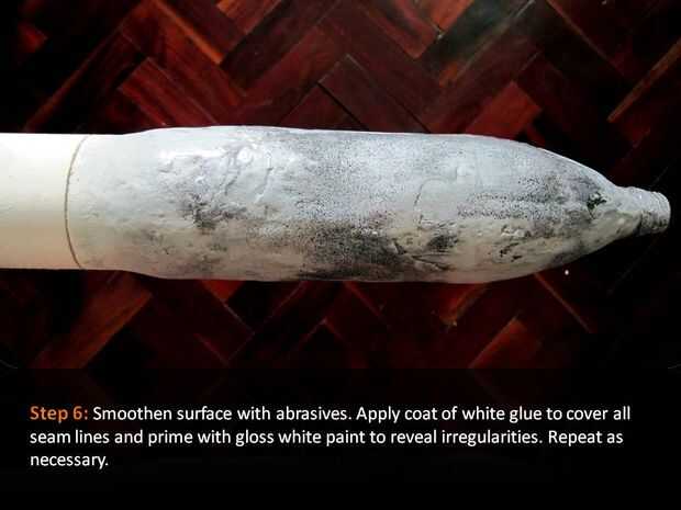 Suavizar la superficie con abrasivos. Aplicar una capa de pegamento blanco para cubrir todas las líneas de costura y cebar con pintura blanco brillante para revelar las irregularidades. Repita según sea necesario.