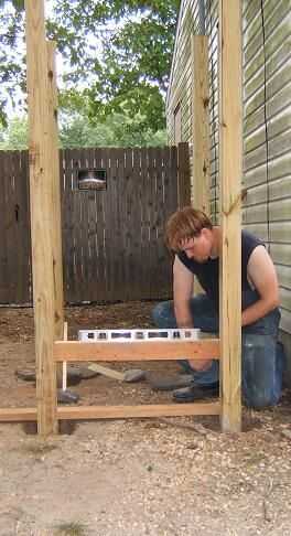 Taladré agujeros en los postes de donde era la llave del barril. Los orificios piloto fueron exactamente 13 pulgadas para arriba de la tierra.