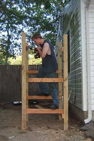 Taladré los orificios guía para los frenillos superior barril dos exactamente 25 pulgadas para arriba de las tapas de las llaves del barril inferior. Conduje con un trinquete y comprobar con un nivel.