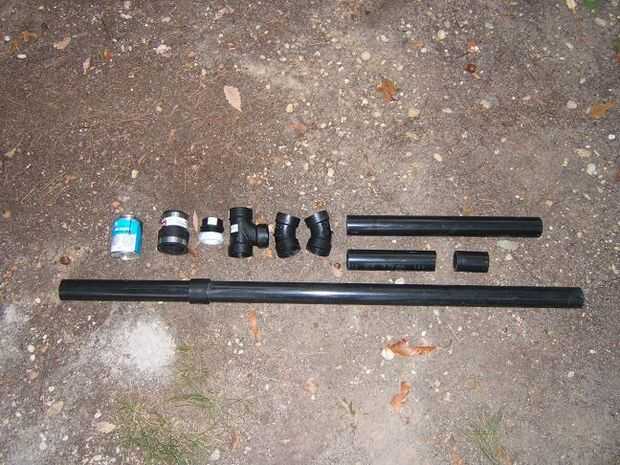 Usé un 2 pulgadas para el reductor de goma de 1 1/2 pulgada y varios pedazos de tubo ABS de 1 1/2 pulgada.