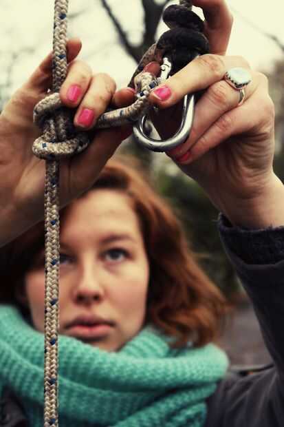 Para asegurarse de que usted realmente puede hacer pivotar, elijo un carabin para colocar en el lazo de mariposa que hice anteriormente en la cuerda. Si usted azotado hasta el mosquetón en el extremo de la cuerda, lo único que tienes que hacer ahora es tirar de la cuerda sobre la rama y fije el lazo de mariposa.