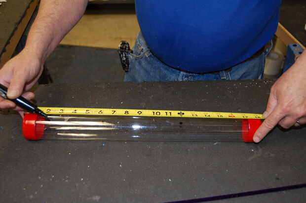 Primero marqué donde quería perforar los agujeros de la varilla. Comencé 2" de la parte inferior y luego había marcado cada 4". Luego me dio vuelta el tubo de 90 grados e hizo lo mismo otra vez, pero había iniciado 4" de la parte inferior.