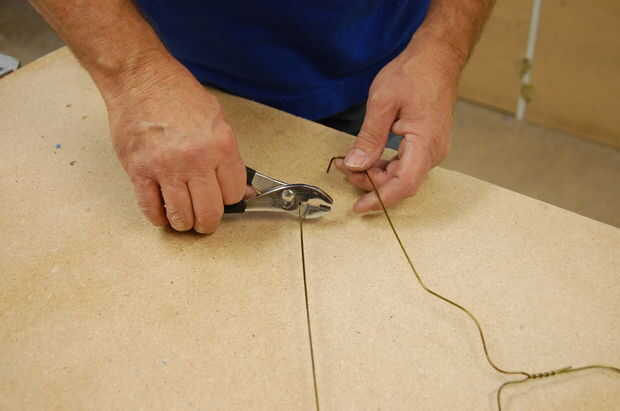 Para colgar el alimentador, usar una percha de alambre. Corte un pedazo recto de 13" de largo. Curva en forma de 'U'. Luego doblar los extremos de 90 grados.