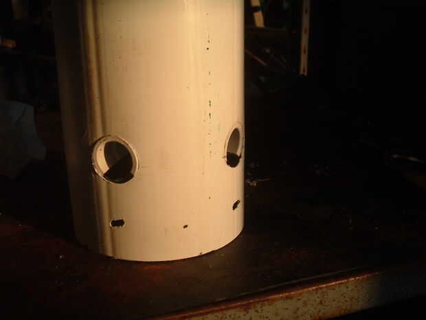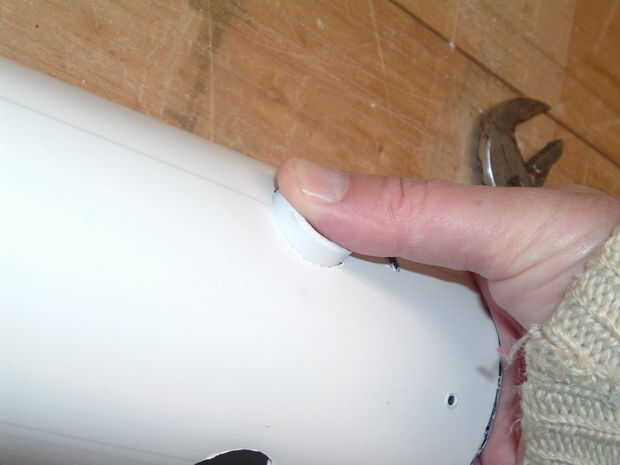 PVC aplicar pegamento a la parte exterior de cada deflector y forzarlos en el tubo hasta que el borde exterior esté al ras con el tubo. Fijar el tubo a un lado para dejar que el pegamento seca durante una hora.