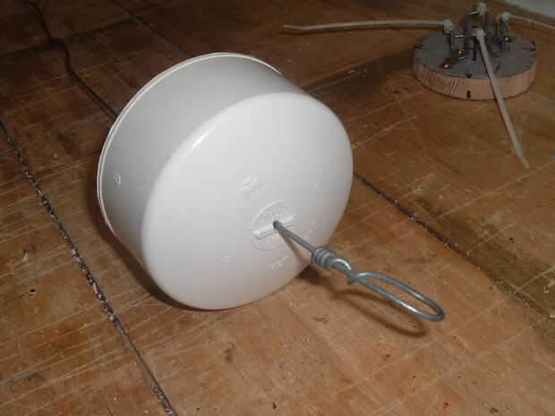 Perfore un orificio de 5/32" en el centro de la tapa de PVC y el alambre a través del hilo de rosca.