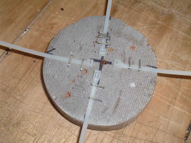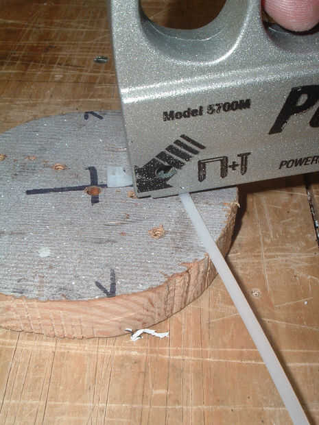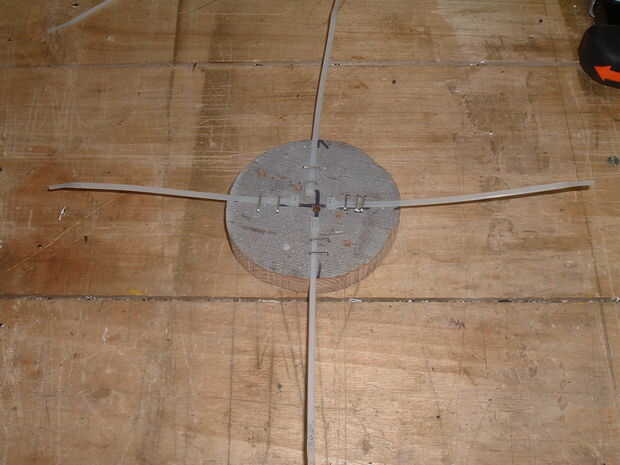 Repita con un lazo de cable en cada una de las otras 3 marcas. Ahora han hecho el flexi-perchas para el alimentador.