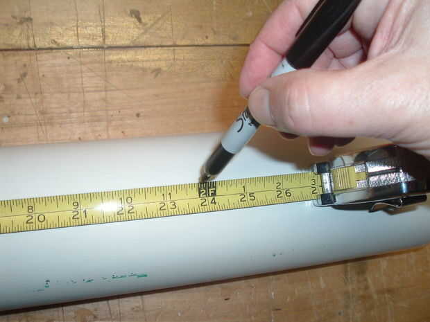 Corte el tubo de 4" a 24" pulgadas de largo con la sierra para metales. Este será el cuerpo del alimentador.