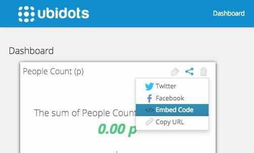 Los datos recogidos se pueden enviar fácilmente a la Nube de Ubidots, donde puede interpretarse mediante la creación de alertas, cuadros de mando en vivo o incluso compartir estos datos en las redes sociales, como incrustar código, o en un enlace público. También puede leer estos datos desde otra aplicación utilizando la API de Ubidots.